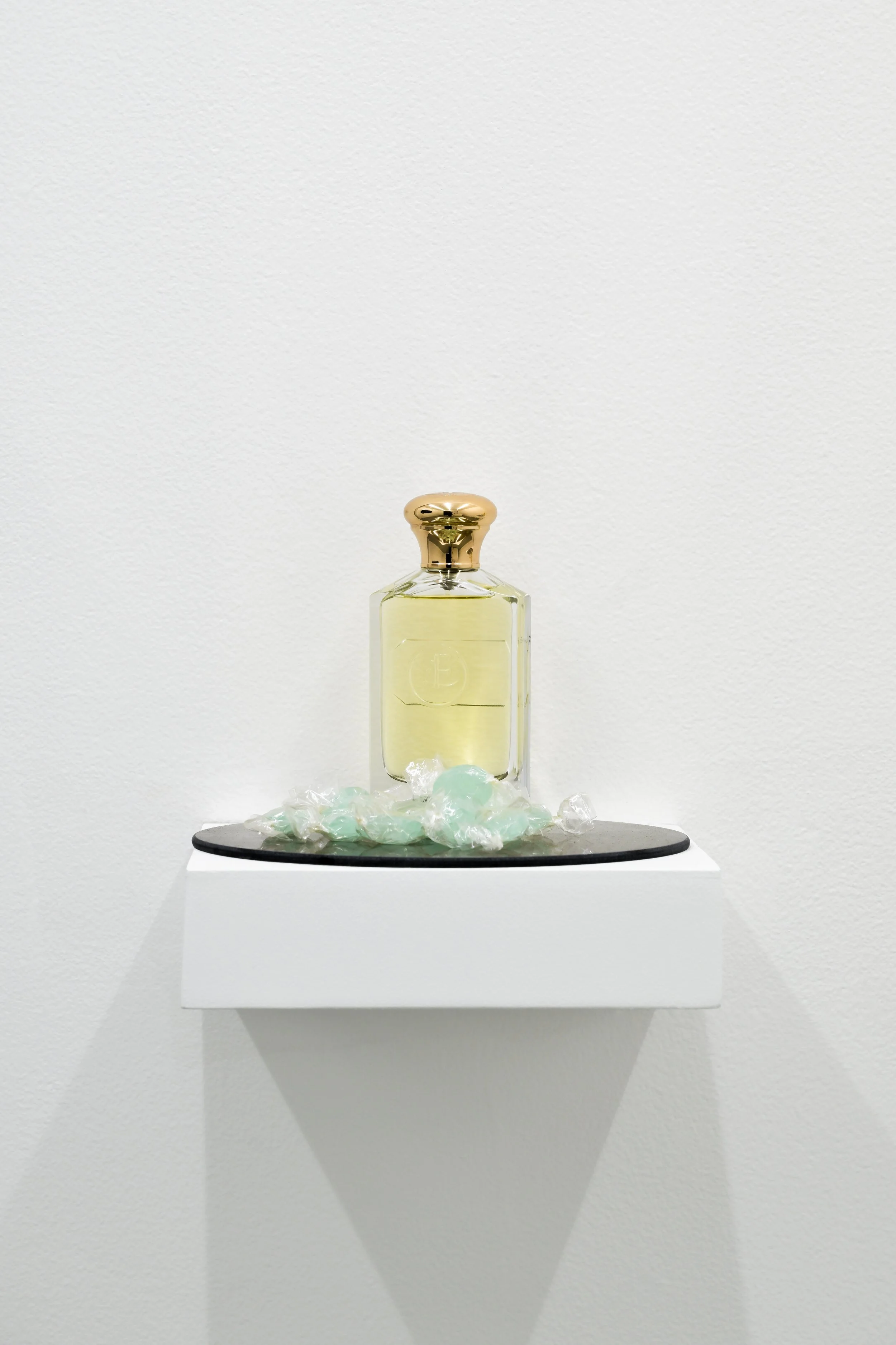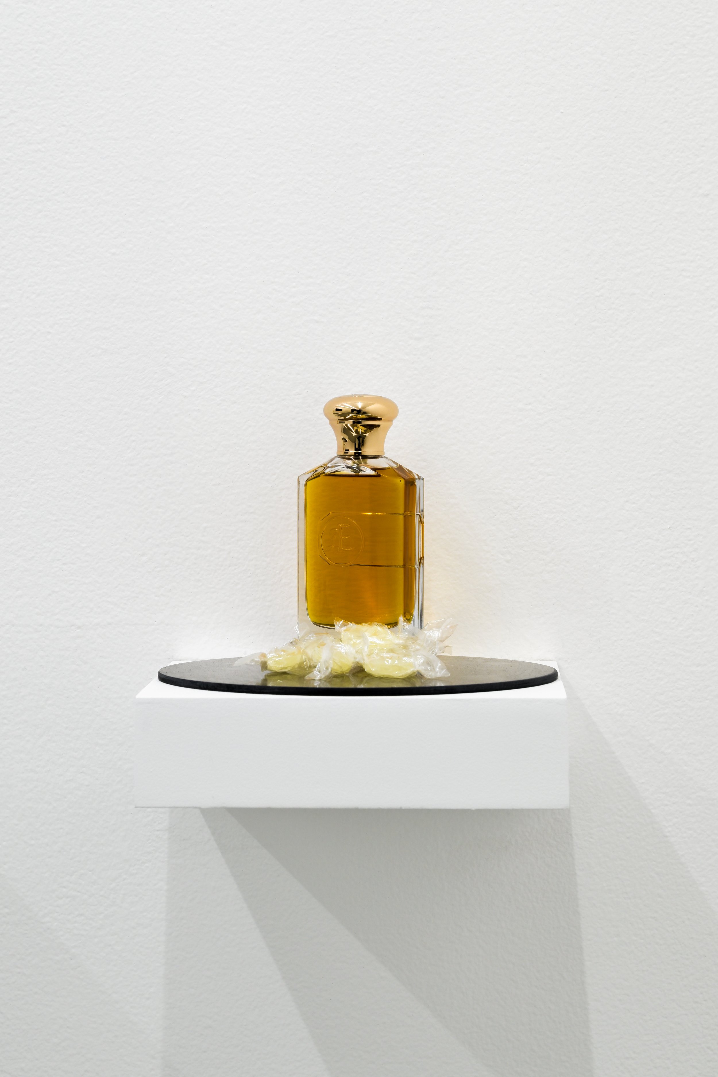 Installation: Wax, plaster, concrete, black pigment, salt, water, LED, Arduino, water pump, fog machine, smoke machine, mirror, pastel, cotton paper, graphite, perfume.